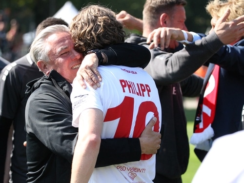Wie dies gelang? Janßens Team war von Beginn an gut in der Partie, ließ die Gäste, deren Fans zahlreich und lautstark vertreten waren, auf dem Rasen nicht zur Entfaltung kommen. In der 10. Minute hatte David Philipp die erste dicke Chance, traf aber nach tollem Pass von Jeremias Lorch nur das Außennetz.