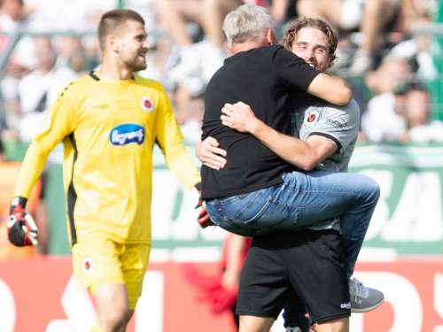 Noch auf dem Rasen im Spielerkreis gab Janßen das Party-Kommando. In der kommenden Woche gilt der Fokus dann wieder der 3. Liga, wo es kommenden Samstag zum 1. FC Saarbrücken geht. Die 2. Runde des DFB-Pokals wird erst am 1. Oktober ausgelost.