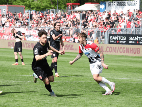 Doch das Blatt wendete sich mit Wiederanpfiff komplett und es blieb kaum Zeit, sich um das wohlverdiente Früh Kölsch zu kümmern: Ein Doppelschlag der Hallenser mit Treffern von Skenderovic (48.) und Deniz (52.) war noch nicht genug. Die direkte Antwort hatte Jeremias Lorch, traf wie schon in der Vorwoche bei 1860 zum 1:2 nach Standard und hauchte den anwesenden Kölnerinnen und Kölnern neuen Mut und neue Hoffnung ein (56.).