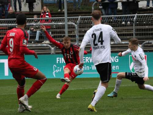 Für Philipp war die Partie nach nicht mal einer halben Stunde verletzungsbedingt schon wieder beendet, so dass Wunderlich früher als erwartet ins Spiel eingriff – und fast auf Anhieb die Führung erzielt hätte: Doch Nico Ochojski rettete für den chancenlosen Verler Keeper Tim Wiesner auf der Linie.