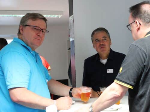 Schöne Aktion bei Viktoria Köln: Vor Saisonbeginn wollte sich der Verein von der Schäl Sick besonders bei den Dauerkartenkunden bedanken, die den Gegenwert ihres letztjährigen Saisontickets trotz der Corona-Pandemie ganz oder teilweise gespendet hatten. Bei Häppchen und ein wenig Früh Kölsch vom Fass traf man sich dazu in der Mannschaftskabine der Profifußballer. Hier gab es die Möglichkeit, mit Andreas Rettig (Vorsitzender der Geschäftsführung), Sportvorstand Franz Wunderlich und Präsident Günter Pütz über aktuelle Viktoria-Themen zu diskutieren und Fragen zu stellen. Am Ende waren sich alle einig: Eine tolle Aktion, doch noch schöner ist es, wieder Spiele live im Stadion zu erleben.