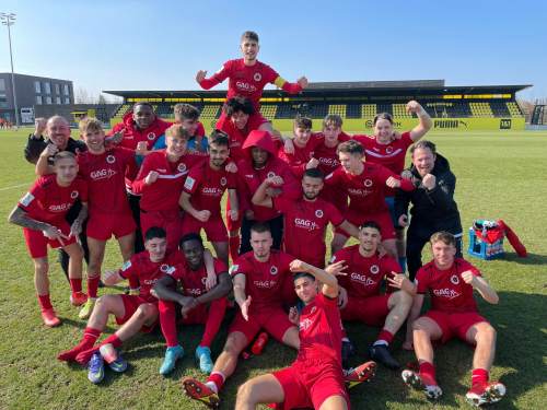 Es gibt Unentschieden, die sich wie Siege anfühlen. Ein Beispiel dafür ist das gestrige 0:0-Unentschieden der A-Junioren bei Borussia Dortmund. Gegen die Schwarzgelben, die bis dato 31 von 33 möglichen Punkten holten, verteidigte die Mannschaft von Coach Marian Wilhelm wacker und hatte selbst einige Torchancen. Dass der Trainer nach dem Spiel seinen imaginären Hut vor der Mannschaft zog, ist kein Wunder. Denn obwohl gleich fünf seiner Schützlinge mit den Profis nach Duisburg fuhren und alle drei nominellen U 19-Torhüter ausfielen, hielt sein Team gegen die mit Abstand beste Offensive der Liga stand. Im Tor kam zudem mit Oskar Hill (15) der jüngste A-Junioren-Bundesliga-Spieler dieser Saison zu seinem Debüt.