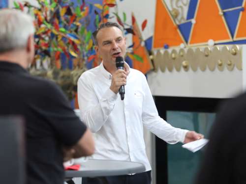 Viktoria-Vize Holger Kirsch hatte in seiner Funktion als Zugleiter, die er seit 2019 bekleidet, eingeladen in die „heiligen Hallen“ und gab spannende Einblicke in die Planung, Umsetzung und Tücken des Rosenmontagszugs.