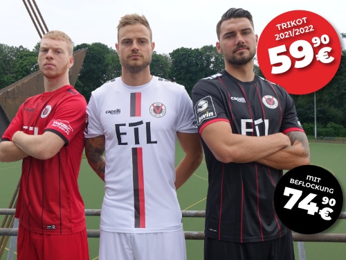 Neue Saison, neuer Ausrüster – gleicher Preis! Zum Start des Monats Juli präsentieren wir euch im Onlineshop die neuen Trikots der Saison 2021/2022. Ab sofort könnt ihr das neue Heimtrikot in Weiß, das neue Auswärtstrikot in der Farbe Rot oder das neue Ausweichtrikot in Schwarz bestellen. Alle Erwachsenentrikots kosten 59,90 Euro, das Kindertrikot in der Farbe Weiß ist für 49,90 Euro erhältlich. Gegen einen Aufpreis von 15 Euro erhaltet ihr wie gewohnt euren individuellen Beflockungswunsch oder den Namen und die Nummer eures Lieblingsspielers.