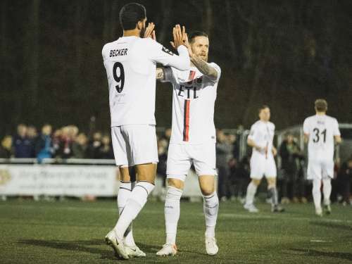 Doch Ömer Tokac antworte für die Gastgeber mit einem sehenswerten Fernschuss in die linke obere Ecke, Ben Voll ohne Chance, 1:3 (60.). Dafür, dass die Eintracht nicht noch mal echte Höhenluft schnuppern sollte, sorgte Patrick Sontheimer, der sich aktuell zum echten Goalgetter entwickelt und im dritten Spiel nacheinander traf, mit den 4:1 für die Viktoria (66.). Das 5:1 war dann eine Co-Produktion von Sontheimer und Becker, der 9er köpfte nach Maßflanke des 6ers sein viertes Tor des Abends (75.).