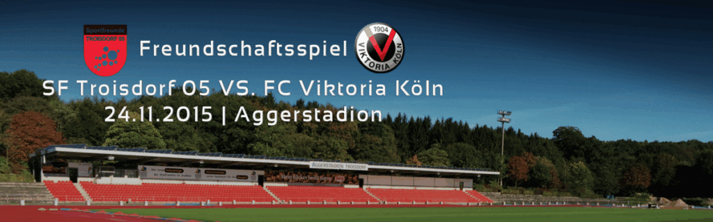 Zur Feier der Wiedereröffnung des Aggerstadions in Troisdorf tritt der FC Viktoria Köln am 24. November zum Freundschaftsspiel gegen die Sportfreunde Troisdorf 05 an. Um 18 Uhr ist Anstoß im Aggerstadion.