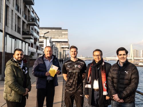 Seit Dienstag ist klar: Viktoria Köln wird im eSport aktiv. Und mit FREY Rechtsanwälte gibt es schon einen Partner auf der Brust der eSportler. Am Freitag hat Professor Dr. Dieter Frey das offizielle Trikot am Rheinauhafen an Lukas „Obafemimoebus“ Möbus und die Verantwortlichen der Viktoria und von ThatsFootball übergeben. Das Outfit der eSportler wird bald auch im Viktoria-Fanshop erhältlich sein.