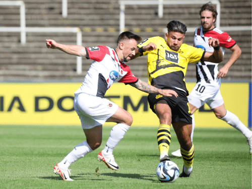 Mit dem BVB weht ein wenig Champions-League-Luft in der 3. Liga. Die Reserve von Schwarzgelb spielt seit dem Aufstieg 2021 eine gute Rolle in der Liga, hat einen spannenden, jungen Kader und mit Jan Zimmermann seinen Coach langfristig gebunden. Zuletzt hatten mit Regensburg und Dresden vor allem die Top-Teams mit Schwarzgelb zu kämpfen. Wir haben uns die Reserve des BVB etwas genauer angeschaut.