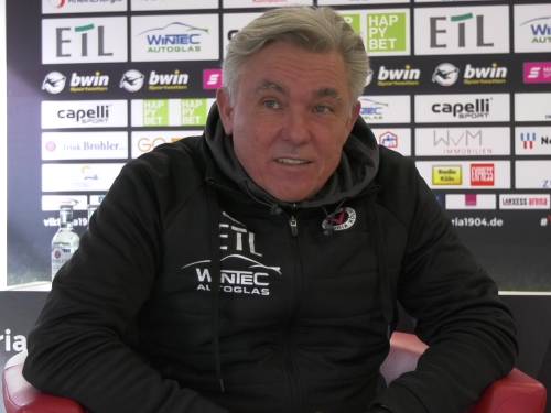 Verbot: „Als in der letzten Partie gegen Viktoria Berlin das 2:1 aus einer klaren Abseitsposition erzielt wurde, habe ich interveniert. Das war dem Schiedsrichter zu viel, und so sah ich die Gelb-Rote Karte. Die tat nicht nur in der letzten Partie weh, sondern wird auch in dieser Begegnung schmerzen. Da ich als Trainer eine Vorbildfunktion habe, tut es mir leid und ich hoffe, dass dies meine einzige Sperre ist und bleibt. Während der letzten beiden Testspiele haben wir dies bereits eingeübt. Co-Trainer Markus Brzenska und Übergangs-Coach Marian Wilhelm genießen da bei mir großes Vertrauen. Da die letzten beiden Testspiele positiv waren, gehe ich davon aus, dass die Jungs auf dem Platz auch mal ohne mich können.“