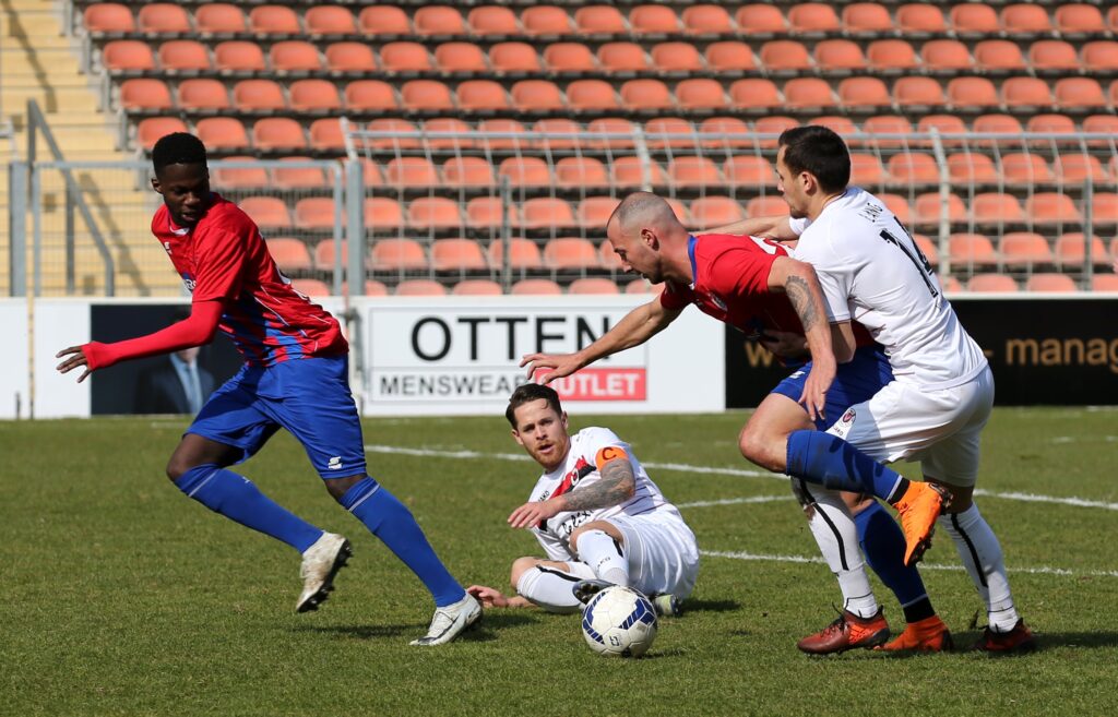 Also ging es wieder in die andere Richtung, die nächste Großchance des KFC stand an. Eine Ecke von links schien erst geklärt zu sein, als Krempickis Fernschuss abgeblockt wurde. Davon prallte die Kugel aber zu Dorda, der aus 25 einfach mal abzog. Sein strammer Versuch streifte die Latte. Glück für die Viktorianer, die sich fortan dem Abpfiff entgegensehnten. (82.)