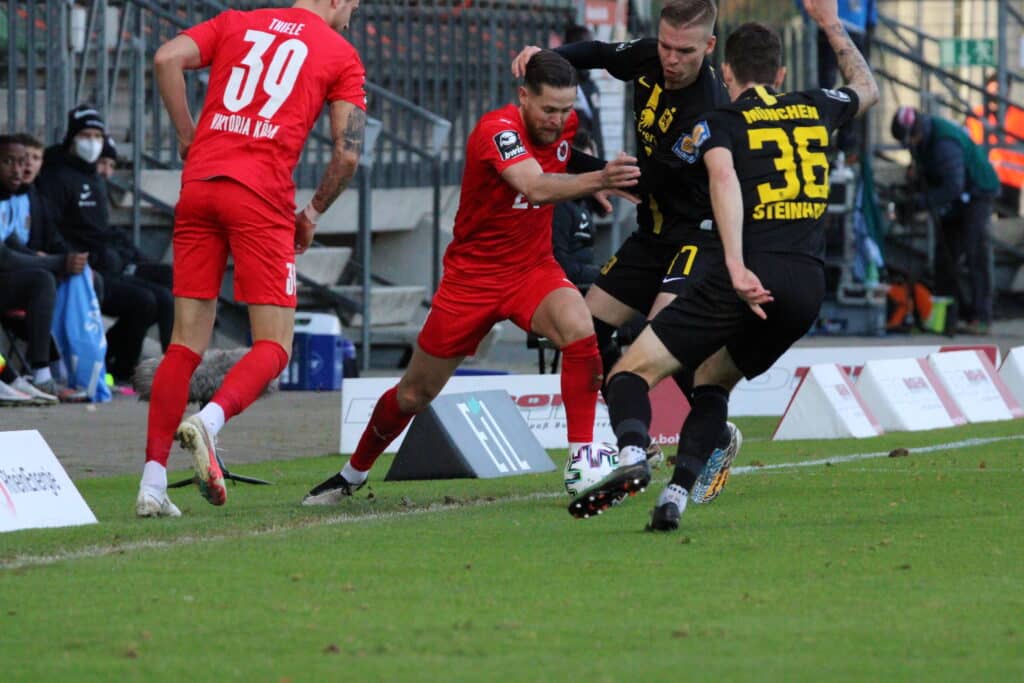 Jubel bei Viktoria Köln: Durch einen Treffer von Marcel Risse in der 88. Minute gelingt den Höhenbergern gegen den TSV 1860 München doch noch ein 2:1-Heimsieg. Dabei hatte es zunächst gar nicht danach ausgesehen. Denn Richard Neudecker brachte die Gäste in der 16. Minute mit einem Traumtor in Führung. Patrick Koronkiewicz sorgte in der 39. Minute für den Ausgleich, ehe den Kölnern doch der Sieg gelang.
