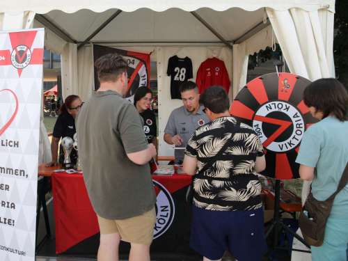 Den Stand der Viktoria betreuten Denis Kirchdörfer als Leiter der Inklusionsmannschaft, Spieler und Betreuerinnen der Ü17-Mannschaft sowie Lisa Schiepan und Lea Schmitz aus der Abteilung Nachhaltigkeit & CSR. Am Glücksrad gab es Ticket-Gutscheine und verschiedene Fanartikel zu gewinnen, Maskottchen Viktor war ein beliebtes Foto-Motiv. Interessierte konnten sich mit dem Viktoria-Team über Inklusion im Fußball austauschen und erfahren, wie sie Teil des Teams werden können.