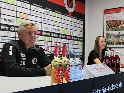 „Wir waren sehr fleißig, haben sehr intensiv trainiert, weil wir einfach dieses positive Gefühl vom Wochenende weitertragen wollten“, schilderte Viktoria-Cheftrainer Olaf Janßen seine Trainingseindrücke aus der laufenden Woche bei einer Pressekonferenz. Man habe sich beispielsweise noch einmal mit dem Abwehrverhalten beschäftigt.