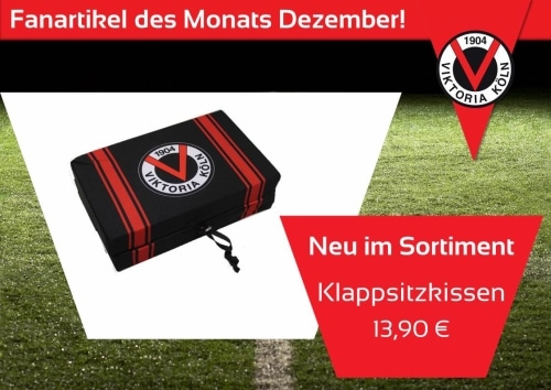 Der Dezember hat begonnen – Zeit für einen neuen Fanartikel des Monats. Und der passt in die Jahreszeit! Das Viktoria-Klappsitzkissen ist das perfekte Accessoire für die nächsten Heim- und Auswärtsspiele. Gerade bei kälteren Temperaturen sorgt es für einen bequemen Sitzkomfort. Das Klappsitzkissen in schwarz mit roter Streifenoptik und dem Wappen der Viktoria lässt sich dank praktischer Trageschlaufe überall mit hinnehmen. Aktuell ist es für nur 13,90 Euro erhältlich.