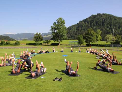 Und wo könnte man die Grundlagen besser legen als hier. „Ja, wir hatten eine lange Anreise mit Zug und Bus — aber wir haben es wieder top angetroffen, das Hotel ist klasse“, schwärmte Janßen nach dem Abendessen: „Wir kennen es ja schon vom letzten Jahr, das fühlt sich ein bisschen an wie zu Hause, klein und vamiliär, richtig schön, genau passend für eine Vussballmannschaft.“ Und mit Blick aus dem Fenster: „Das ist natürlich ein Sensationspanorama, das Auge ist ja auch mit, von daher fühlen wir uns pudelwohl und freuen uns auf die Woche.“