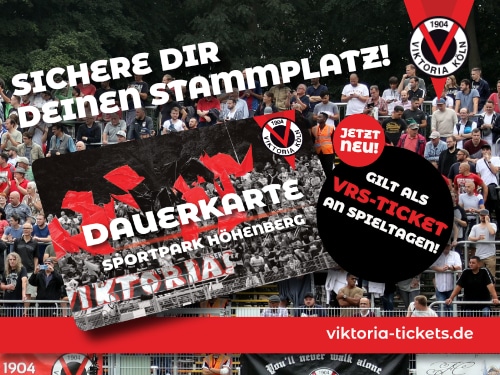 „Vik, Vik, Viktoria!“ Ab sofort sind die Dauerkarten für die Drittliga-Saison 2021/2022 unter www.viktoria-tickets.de verfügbar. Die Preise sind stabil geblieben: Vollzahler bekommen die Stehplatz-Dauerkarte für nur 149 Euro (*), Sitzplätze für die komplette Spielzeit sind für 299 Euro erhältlich. Der Vor-Ort-Verkauf startet zu einem späteren Zeitpunkt.