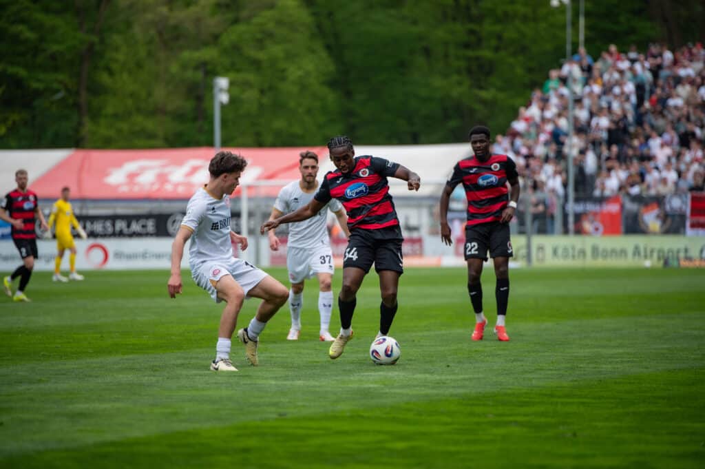 Spieler lief mit dem Ball in Richtung des Kölner Tores. Dabei eröffnete der Spieler May von Wehen