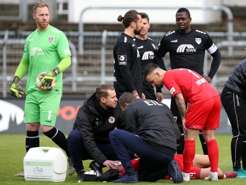 Steffen Lang hat sich am Samstag beim Spiel von Viktoria Köln gegen den KFC Uerdingen schwere Verletzungen zugezogen. Der 28-Jährige war in der neunten Minute unglücklich mit einem Gegenspieler zusammengeprallt und musste lange auf dem Spielfeld behandelt werden. Nach der anschließenden Auswechslung wurde eine Platzwunde am Kopf noch vor Ort mit mehreren Stichen genäht. Anschließend wurde der Defensivspieler ins Krankenhaus Köln-Merheim gebracht. Die Diagnose: Die Nase, der Augenunterboden und das Jochbein sind gebrochen. Lang droht somit eine längere Pause. Wann er wieder für die Viktoria auflaufen kann, lässt sich aufgrund der Komplexität der Blessuren noch nicht sagen.