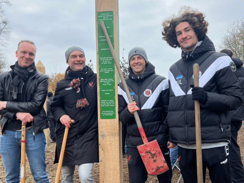 Die beiden Profis packten gemeinsam mit Kirsch und Holger Görgens (Vertreter Fanbeirat & ebenfalls gespendet mit Fanclub, Premium Ost 805), Kai Gauls (Gewinner „Wald für Köln“-Ticket), sowie Lea Schmitz (Nachhaltigkeit & CSR) an und setzten Bäume in die Ackerfläche in Köln-Ostheim, sodass hier bald eine neue, grüne Waldfläche entsteht.