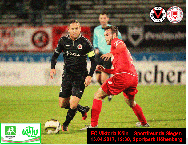 Am Gründonnerstag steht für die Viktoria ein weiterer Schritt in Richtung Regionalliga-Meisterschaft an. Mit den Sportfreunden Siegen kommt ein Gegner in den Sportpark Höhenberg, der zwar sportlich noch nicht abgestiegen ist, aber schon bekanntgegeben hat, dass er aus finanziellen Gründen im nächsten Jahr in der Oberliga antritt.
