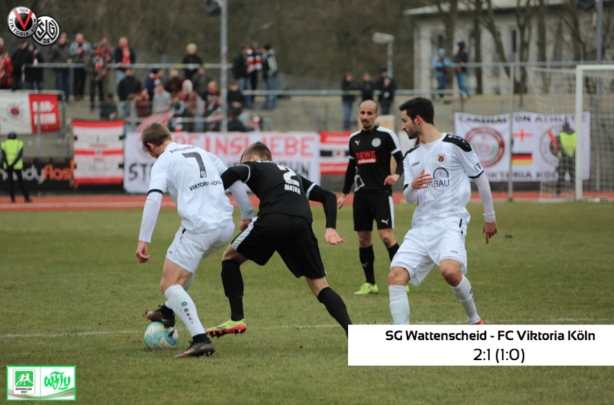 Anpfiff der zweiten Halbzeit und die Viktoria rannte prompt an. Es war deutlich zu sehen, dass der späte Führungstreffer aus der ersten Halbzeit die Kölner unbeeindruckt gelassen hatte. Es dauerte keine zehn Minuten und man traf zum verdienten Ausgleich durch Reimerink. Zuvor flankte Malura von rechts ins Zentrum, der Ball fand keinen Kölner, wurde aber auch nicht geklärt. So konnte Reimerink den Ball aus sieben Metern ins rechte Eck schießen. Von Seiten der Heimmannschaft war bisher gar nichts zu sehen, sie wurde es durch den Ausgleich wach gerüttelt. In der 71. Spielminute erzielten die Wattenscheider erneut ein Tor aus dem Nichts. Top- Stürmer Kaya wurde durch die Schnittstelle der Viktoria- Innenverteidigung in Richtung Pellatz geschickt und verwandelte den Ball souverän zur erneuten Führung. Danach waren es erneut die Kölner, die das Spiel dominierten, doch der Ertrag blieb aus. Zudem wurde Candan im Sechszehner zu Boden gerissen, bekam jedoch keinen Elfmeter zugesprochen. Eine klare Fehlentscheidung des Unparteiischen. Danach gelang es der Viktoria nicht mehr zwingend genug vor das Tor der Wattenscheider zu kommen und man verlor die Partie unglücklich mit 1:2.