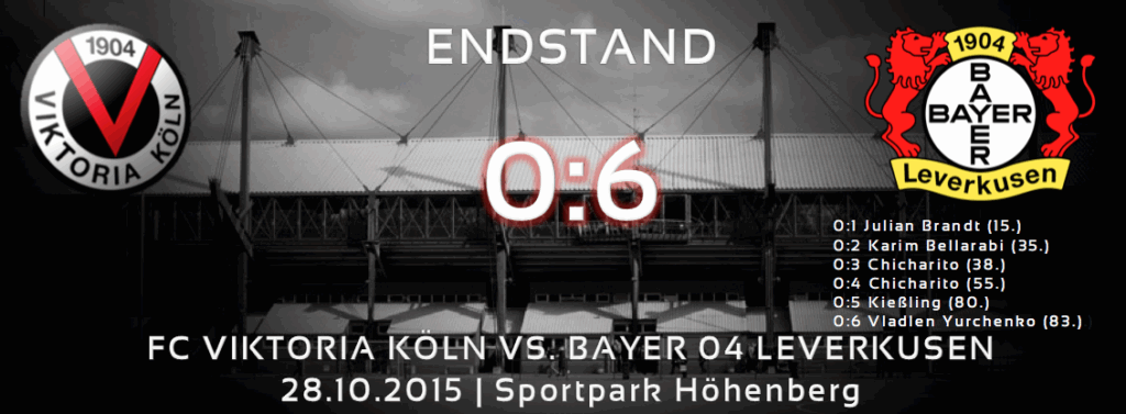 Bei toller Atmosphäre im Sportpark Höhenberg setzte Calhanoglu das erste Ausrufezeichen der Partie, traf jedoch aus spitzem Winkel nur das Außennetz. Der Underdog aus Köln versteckte sich nicht und kam in der 8. Minute das erste Mal gefährlich vor das Leverkusener Gehäuse. In der Folgezeit verstärkte der Bundesligist den Druck auf das Tor der Gastgeber. Chicharito brachte in der 13. Spielminute nach Flanke von Calhanoglu nicht genug Druck hinter seinen Kopfball. Nur zwei Minuten später trugen die Angriffsbemühungen der Bayer-Elf Früchte: Brandts Dribbling konnte von der Viktoria-Defensive nicht unterbunden werden, sodass dieser das Spielgerät zur 0:1-Führung einschob. Nach dem mutigen und kampfstarken Beginn wirkten die Kölner durch den Gegentreffer zunehmend verunsichert. Reimerink verstolperte den Ball in der 18. Minute nach einem schnellen Angriff kurz vor der Torauslinie, bevor er gefährlich reinziehen konnte. Viktoria-Keeper Pellatz bewies nach gut 30 Minuten erneut sein Können und entschärfte einen Torschuss des agilen Bellarabi. Die Viktorianer konnten sich kaum aus der eigenen Hälfte befreien. Bei schnellen Kontern fanden unsere Jungs nur schwer einen Weg durch die gut aufgestellte Leverkusener Abwehrreihe. Nach einem schönen Kombinationsspiel legte Brandt für Bellarabi ab, der das runde Leder platziert in der linken Torecke zum 0:2 unterbringen konnte (35. Min.). Nur drei Minuten später fand ein Heber mit Chicharito seinen Abnehmer, der freistehend vor Pellatz die Führung zum 0:3 ausbaute.