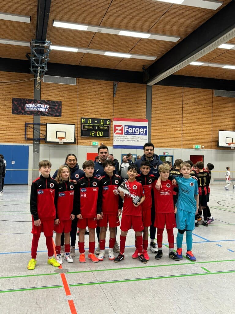 Top-Wochenende für unsere U12: Am Samstag holte die Mannschaft von Trainer Jannis Soriano Platz 2 beim Eisbachtaler Budenzauber in Montabaur. Mit dabei waren unter anderem Eintracht Frankfurt, Mainz 05, KAS Eupen, Fortuna Düsseldorf und der 1.FC Kaiserslautern.