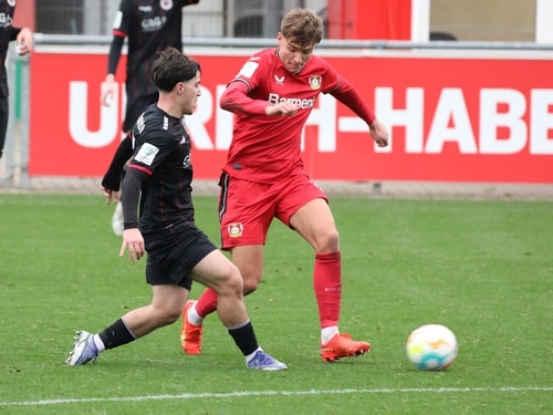 Wilhelm und seine Mannschaft stecken derzeit mitten in der Vorbereitung auf die letzten Bundesliga-Spiele. Am Sonntag (Anpfiff 11:00 Uhr) geht es für unsere U19, die das Jahr 2022 mit einem 2:0-Sieg gegen Tabellenführer 1. FC Köln und einem 1:1 bei Bayer Leverkusen beenden konnte, daheim gegen den VfB Hilden weiter in der Bundesliga. Danach warten mit dem SC Verl (25.02.), dem SC Paderborn (04.03.) und Fortuna Düsseldorf (11.03.) die letzten drei Gegner der Bundesliga-Saison 2022/23.