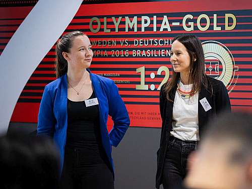 Nach der Begrüßung durch DFB- Generalsekretärin Heike Ullrich hatten die Standorte Gelegenheit, ihre Arbeit im Rahmen des Projekts vorzustellen. 80 Teilnehmende, darunter Lisa Schiepan und Lea Schmitz für Viktoria Köln, sorgten für volle Sitzreihen in den Konferenzräumen eins und zwei des DFB-Campus und spiegelten damit die gewachsene und inzwischen unumstrittenen Bedeutung der gesellschaftlichen Verantwortung im Fußball wider. „Wir haben was gegen Rassismus“, lautet ein Slogan des Projekts.