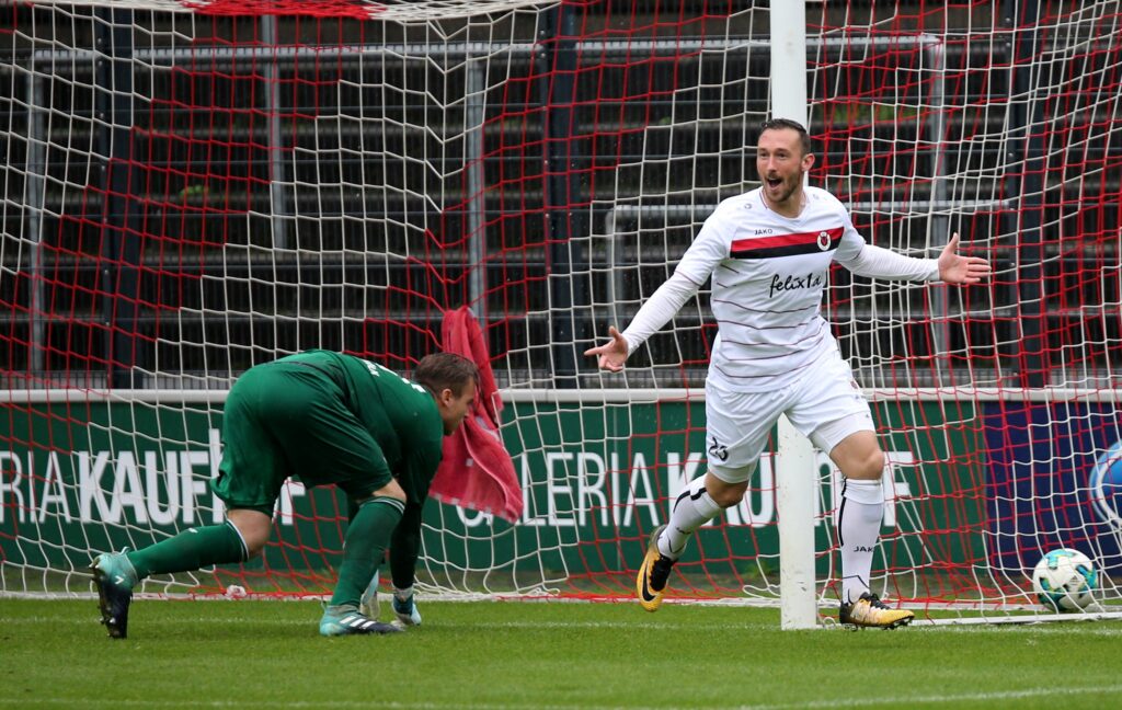 Im Gegensatz zum Unentschieden gegen Uerdingen nahm Trainer Marco Antwerpen zwei personelle Änderungen vor. Für Leander Goralski und Marc Brasnic starteten Marco Fiore und Kevin Holzweiler, Timm Golley rückte in die Sturmspitze. Die Zuschauer im Franz-Kremer-Stadion konnten von Beginn an ein schwungvolles Spiel beobachten, in dem sich beide Mannschaften viele Torchancen kreierten. Schon in der ersten Minute lag der Ball im Kasten von Sven Müller, aber Torschütze Lukas Nottbeck hatte hauchdünn im Abseits gestanden – kein Tor! Dann wurde es auf der anderen Seite gefährlich, aber Birk Risa verfehlte hauchdünn. In der 21. Minute war es dann soweit und die Viktorianer konnten durch Timm Golley die Führung erzielen. Er behielt nach schöner Kombination über Simon Handle und Kevin Holzweiler die Nerven und netzte eiskalt ein. Das 1:0 hatte allerdings nicht lange Bestand, da Roman Prokoph in alter Stürmermanier die Fußspitze hinhielt und so nach einer Hereingabe von links für den Ausgleich sorgte. Erneut nur zwei Minuten später führte auf einmal der Gastgeber – Filip Kusic traf nach einer Ecke mit Hilfe des Innenpfostens zum 2:1. In den Schlussminuten des ersten Durchgangs wurde es dann richtig turbulent. Erst konnte Golley mit seinem zweiten Treffer des Tages für den erneuten Ausgleich sorgen, dann ging die Viktoria aufgrund des Tores von Michael Klauß doch mit einem Rückstand in die Pause, der die Kugel im Fallen irgendwie an Keeper Sebastian Patzler vorbeischummeln konnte.
