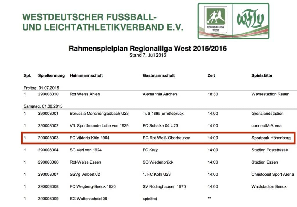 Der aktuelle Spielplan der neuen Regionalliga Saison 2015/2016 wurde veröffentlicht.