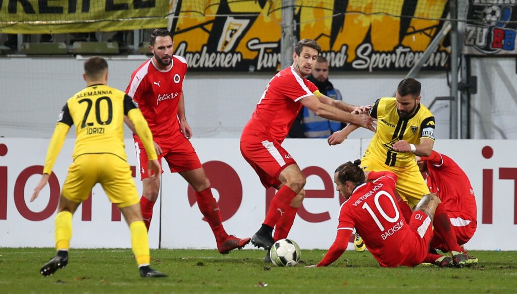 Am Ende einer packenden Partie nahm die Viktoria einen Punkt aus Aachen mit. Offensiv druckvolle Hausherren bissen sich an der beherzten Verteidigung der Viktorianer und an einem überragenden Sebastian Patzler die Zähne aus. So musste sich die Alemannia schließlich mit einem 1:1 begnügen, obwohl sie ein deutliches Chancenplus hatte. Fiedler traf zur Führung für die Gastgeber und Wimmer glich wenig später aus.