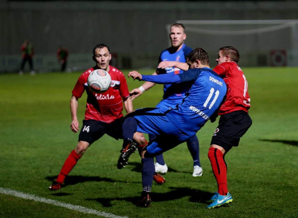 Unter Flutlicht hat sich unsere Viktoria am Freitagabend mit 1:1 vom Wuppertaler SV getrennt. Vor fast 1200 Zuschauern in Höhenberg zeigte unsere Mannschaft nicht ihre beste Saisonleistung, fuhr aber dennoch einen möglicherweise wichtigen Punkt im Kampf um die Spitzenposition ein. Mit dem gut mitspielenden und offensivstarken Gegner aus Wuppertal kam die Viktoria über weite Strecken nicht zurecht.
