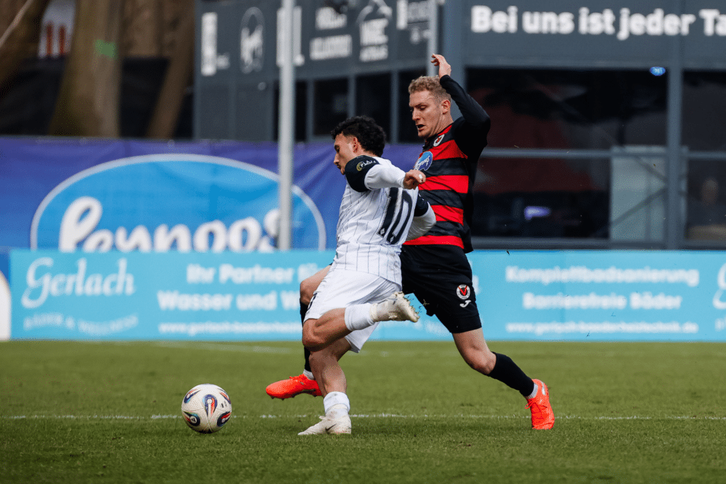 Kurz vor der Pause wird es erneut brenzlig im Strafraum der Höhenberger. Schulz sprintet aus seinem Tor und faustet den Ball aus der Gefahrenzone, allerdings genau vor die Füße von Asallari. Dessen Schuss landet am rechten Pfosten und kann anschließend geklärt werden (42.).