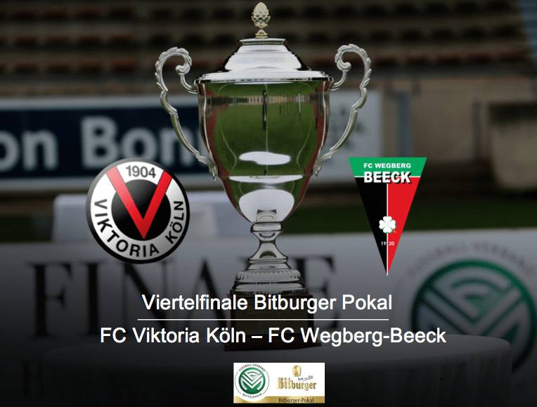 Am Dienstag, dem 16. Februar 2016 tritt Viktoria Köln im Viertelfinale des Bitburger Pokals gegen den FC Wegberg-Beeck an. Endlich mal wieder ein Heimspiel im Pokal für unsere Viktoria. Anstoß ist um 19.30 Uhr im Sportpark Höhenberg.