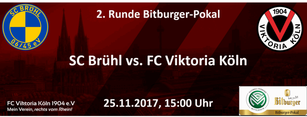 Am Samstag (15:00 Uhr) trifft unsere Viktoria in der 2. Runde des Bitburger-Pokals auf den SC Brühl, der aktuell in der Landesliga spielt. Das Duell findet auf einem kleinen Kunstrasenplatz statt, der aber besonders bei den aktuellen Witterungsbedingungen fast besser sein sollte, als ein umgepflügter Naturrasen.