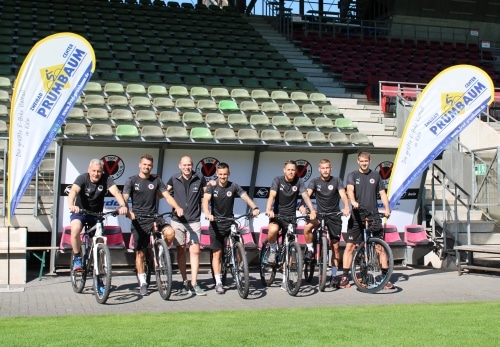 Zweirad Prumbaum, das Fachgeschäft in Köln-Dellbrück, hat den FC Viktoria Köln mit hochwertigen Mountanbikes ausgestattet. In dieser Woche übergab Inhaber Jörg Prumbaum die Räder an die Mannschaft.